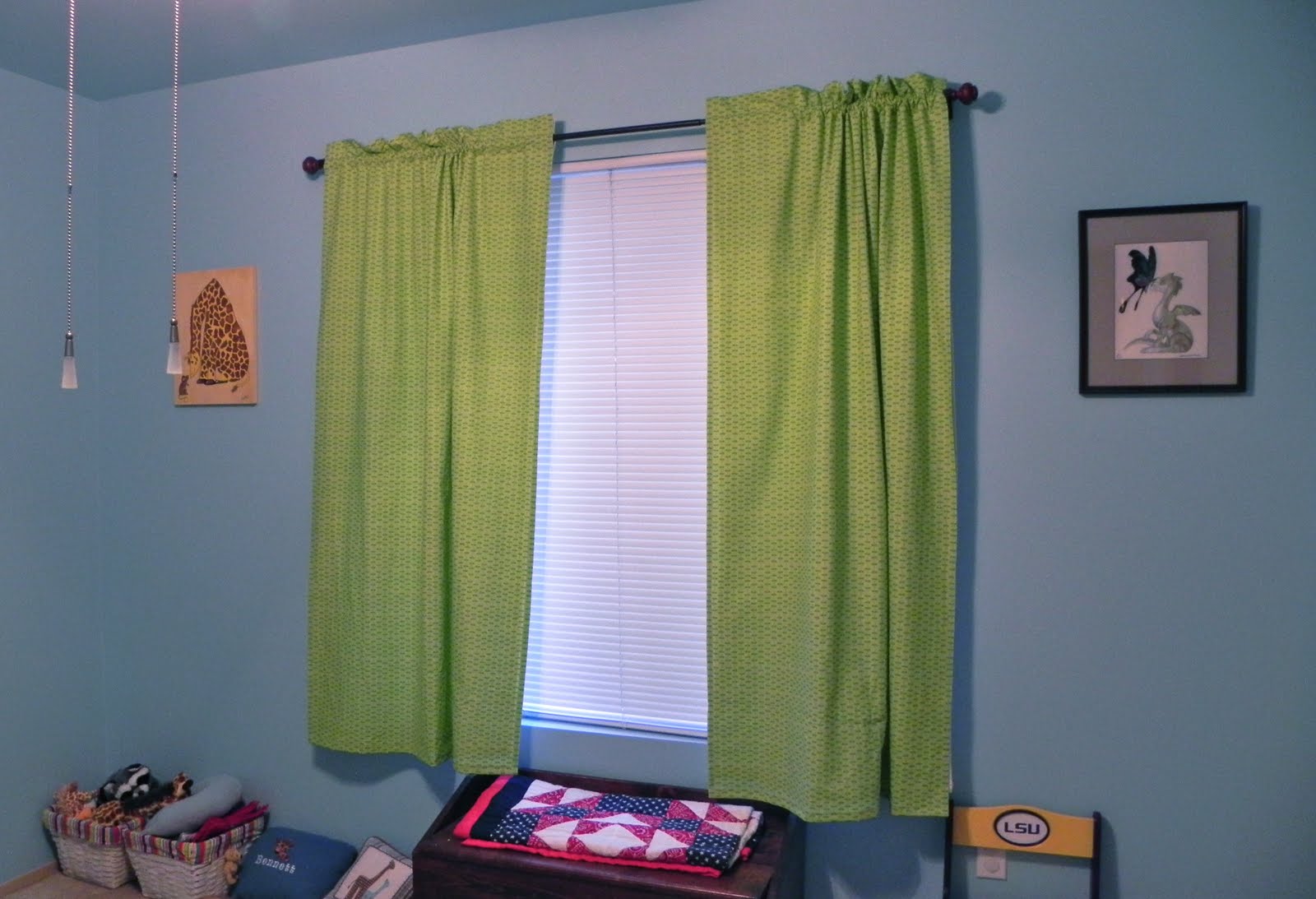 Since the sun has been going down later and later, bed time for Little Bit has been getting a little more difficult. He has a huge 58″x59″ west facing window in his room that lets in great light during the day, but at bed time the light is too much, making it more difficult for him to get to sleep.